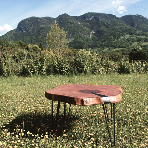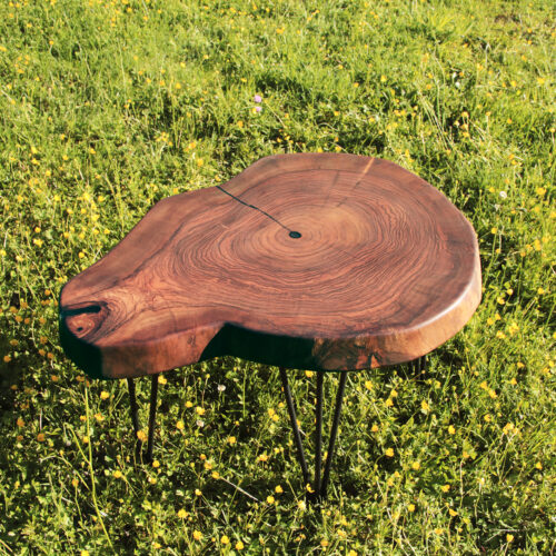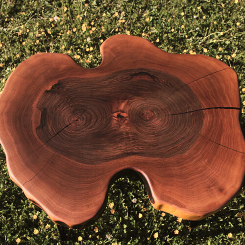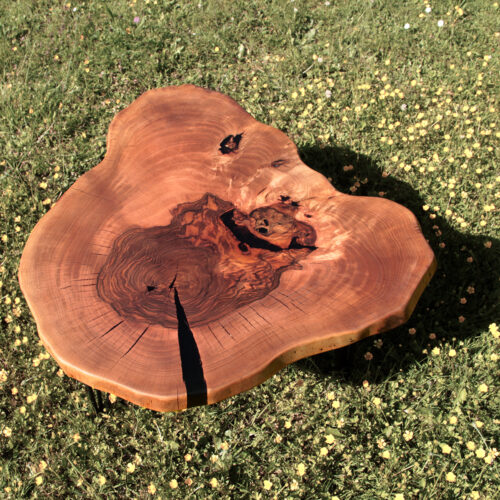 Table en bois de Cèdre, pieds en cèdre, Percée