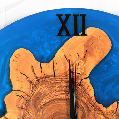 Wall Clock, 40 cm, Olive, Blue Epoxy